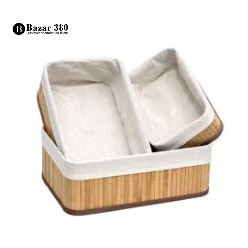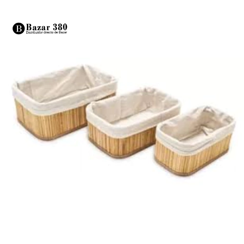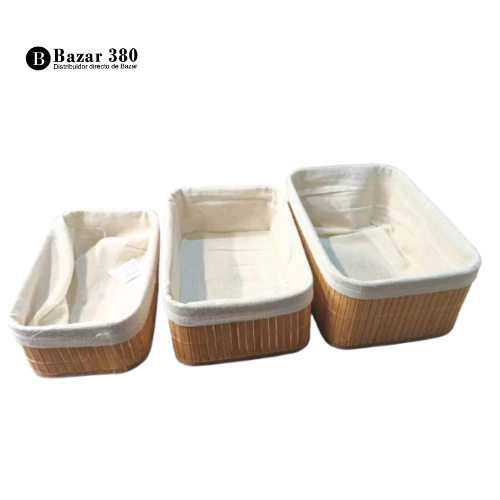Set x 3 Canastos de mimbre con tela Rectangulares Codigo 18036