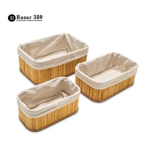 Set x 3 Canastos de mimbre con tela Rectangulares